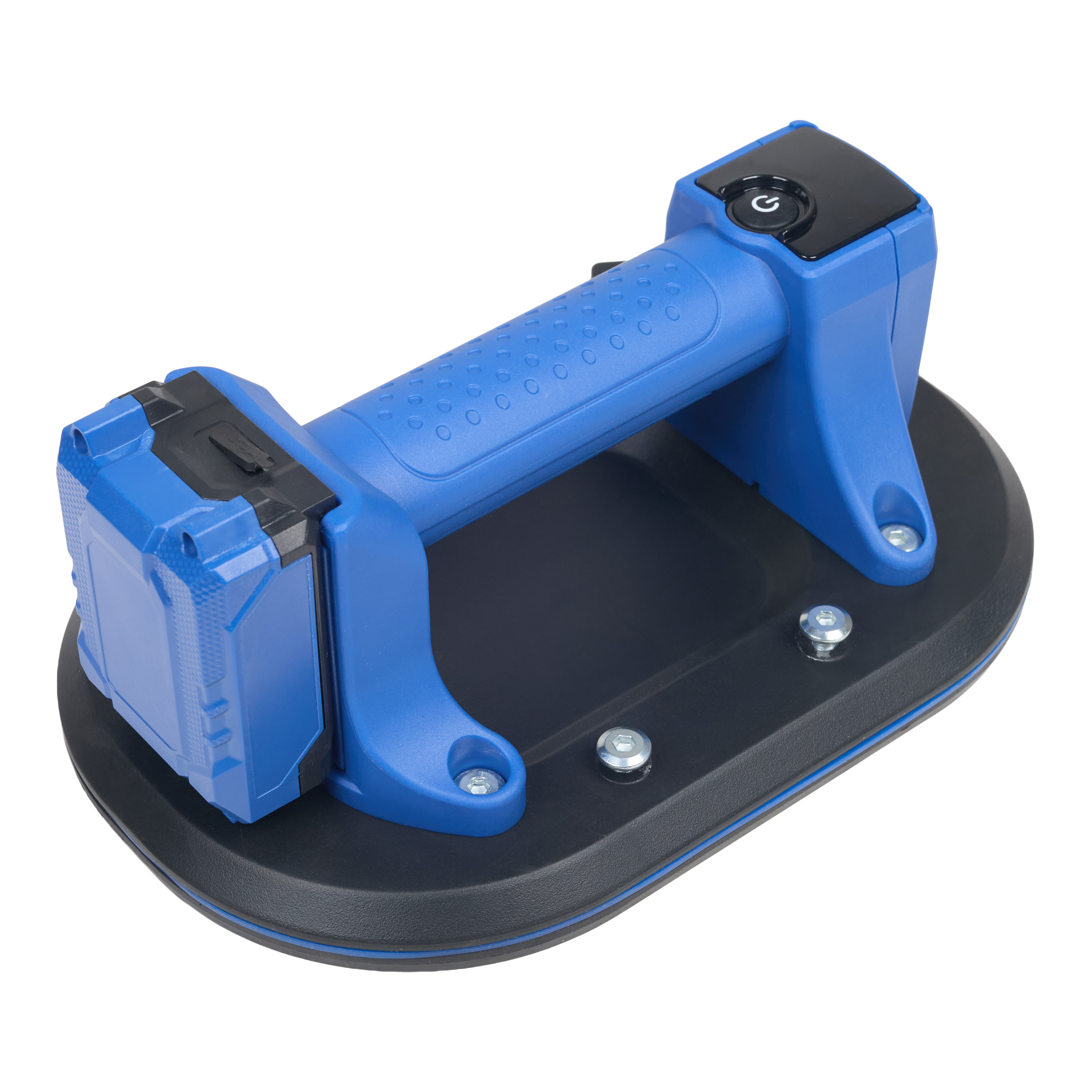 Присоска працює від акумулятора, а змінний акумулятор дозволяє не зупиняти роботу: один у роботі — інший на зарядці. Це особливо зручно на об’єктах, де важлива швидкість та стабільний темп монтажу.